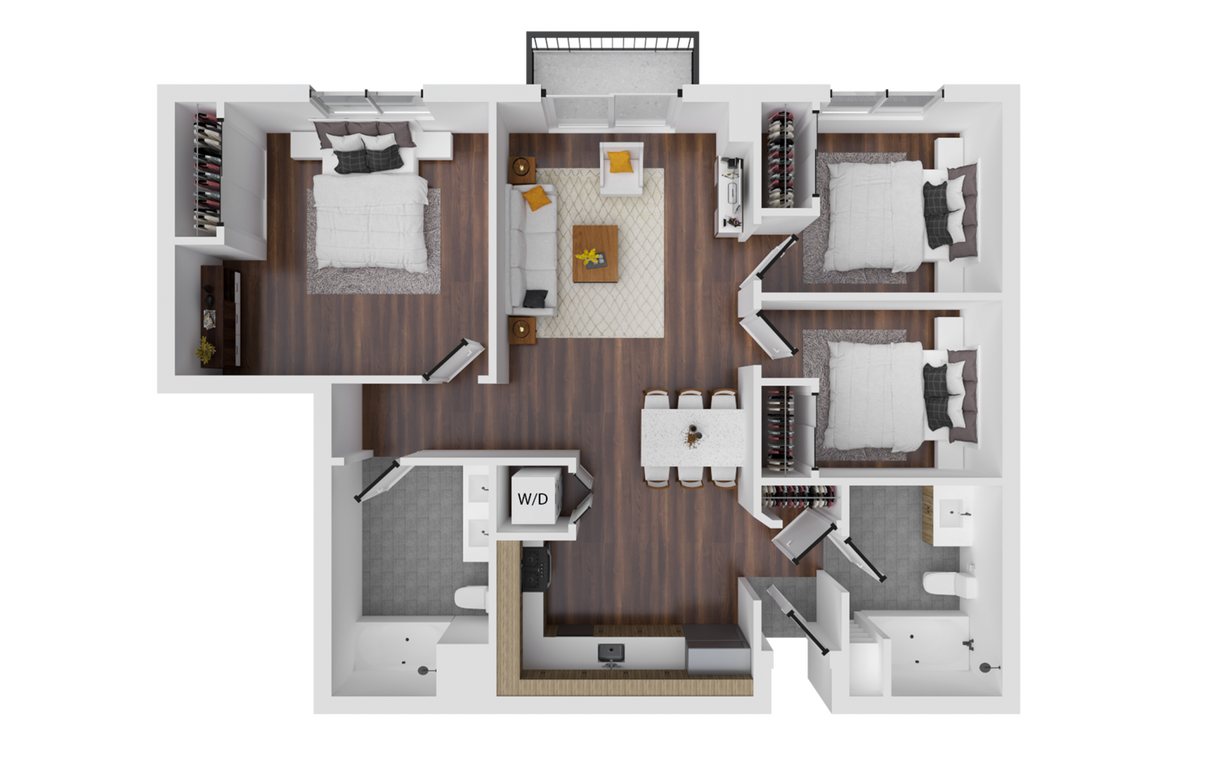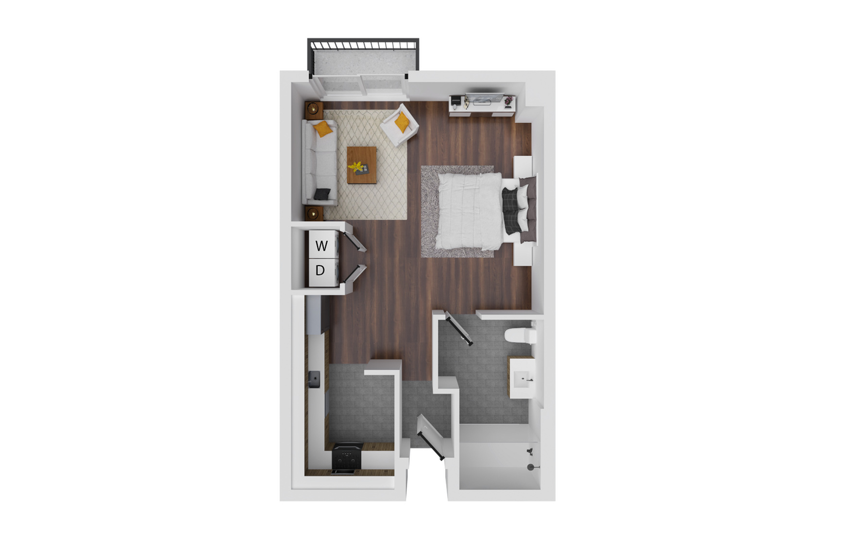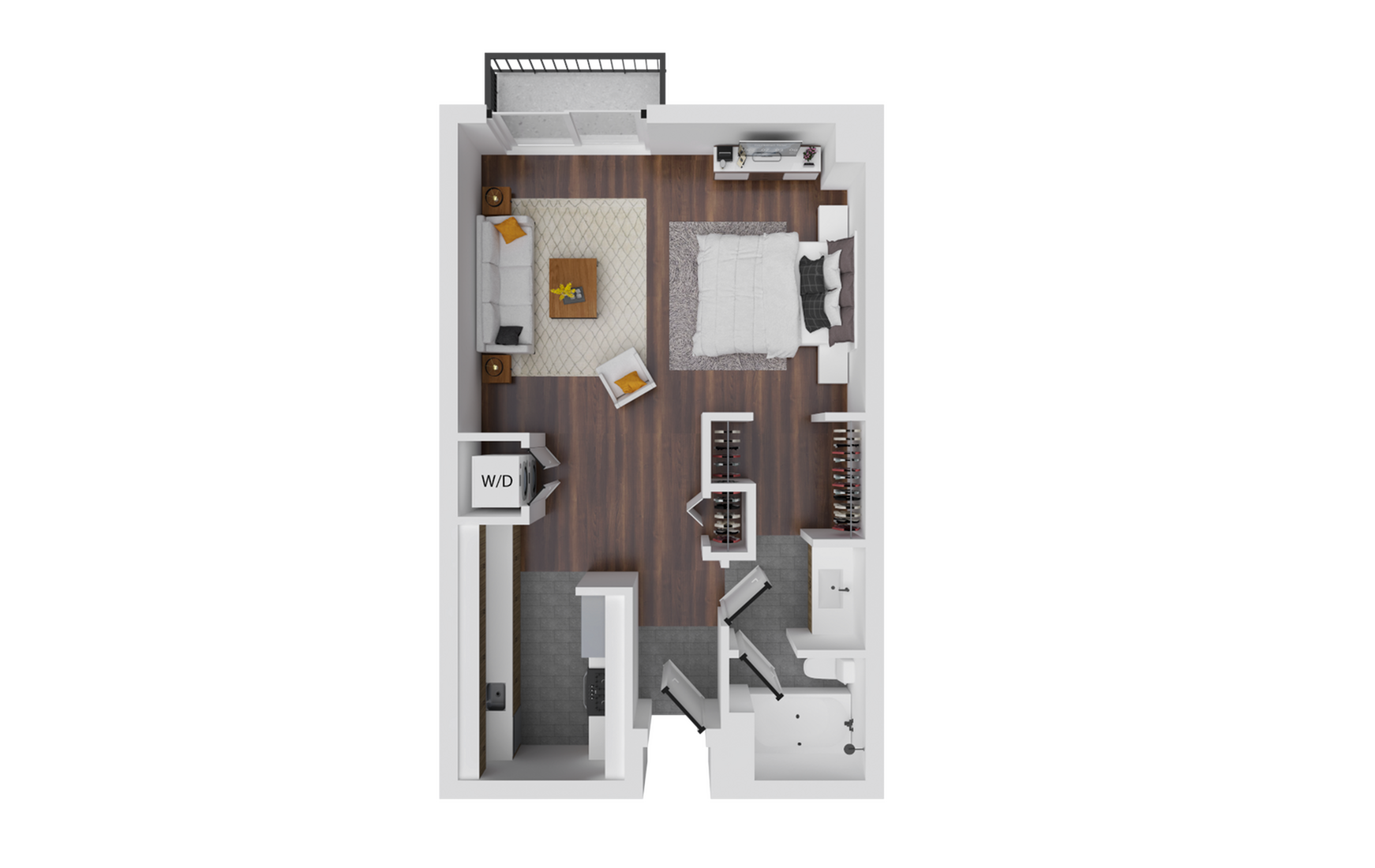 At Mountainaire, we’ve got your student living covered with a variety of floor plans. Go solo in a studio, room up in a two-bedroom or three-bedroom, or take advantage of our individual leasing options. Freshly renovated, our apartments boast in-unit washer & dryer, sleek hardwood-style flooring, stainless steel appliances, and high-speed wi-fi. Take a look below and find the perfect space for you, including our 2-bedroom apartments!
